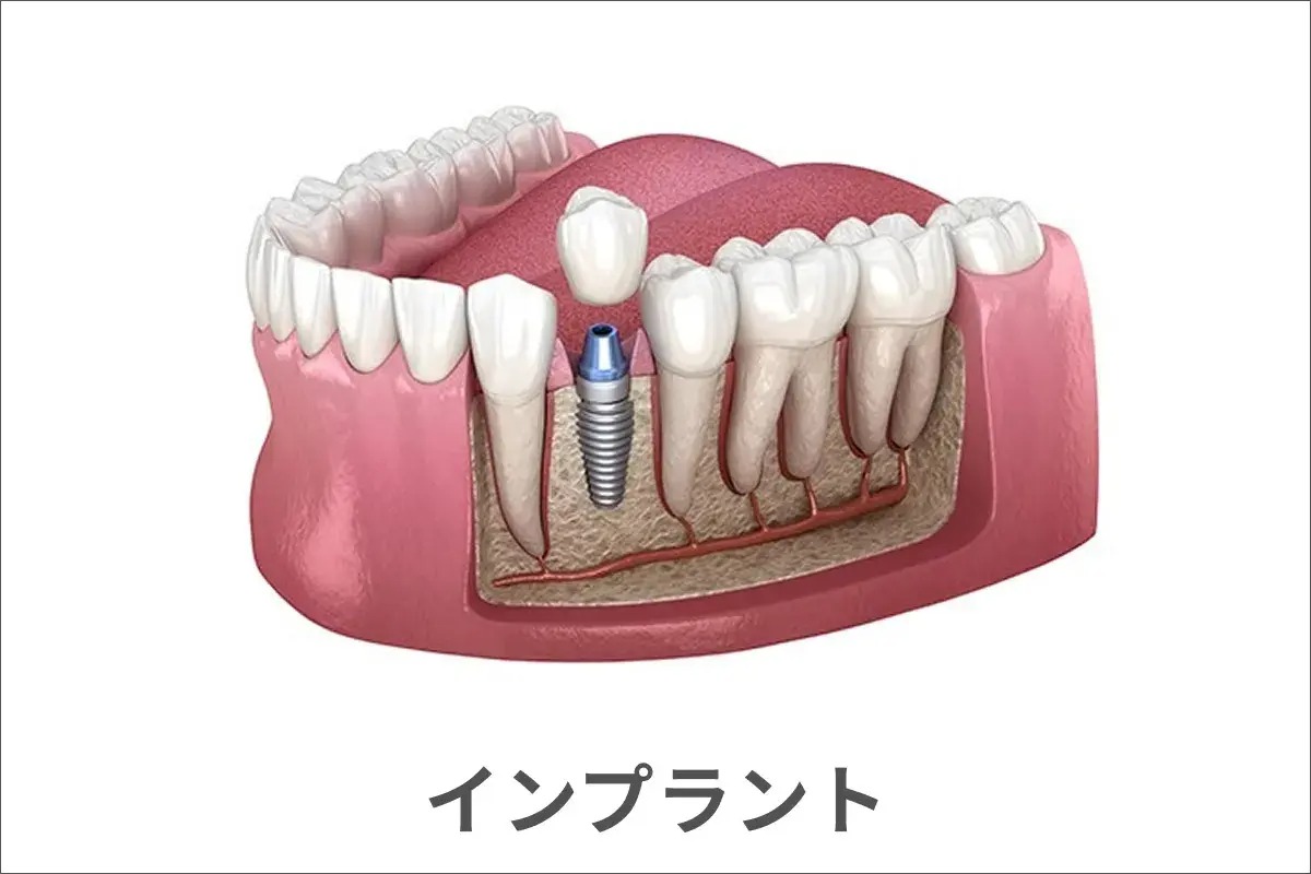 インプラント治療とは、歯を失った部分に人工の歯根(インプラント)を埋め込み、その上に人工の歯を装着する治療法です。